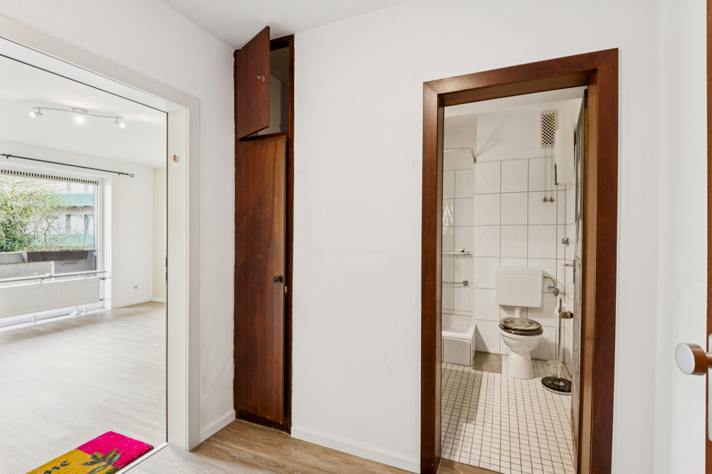 Barrierefrei im Ratinger Zentrum! Bei dieser ansprechenden Immobilie handelt es sich um eine gepflegte Wohnung in der zweiten Etage. Die Wohnung besteht aus einem attraktiven großen Wohn-/Schlafraum, mit offener Küche, einer Diele mit Abstellkammer und einem Badezimmer und lässt sich bequem über einen Fahrstuhl erreichen und ist barrierefrei zugänglich. Die Wohnung wird per Zentralheizung beheizt. Ein aktueller Energieausweis liegt zur Besichtigung vor. An den Wohn-/Schlafraum grenzt auch ein großer Balkon, auf dem es sich wunderbar vom Alltag erholen lässt. Anschließend können Sie Ihre Wocheneinkäufe entspannt in die bereits vorhandene Einbauküche tragen. Es gibt außerdem einen Kellerraum, der Ihnen Platz für Ihre Habseligkeiten bietet.