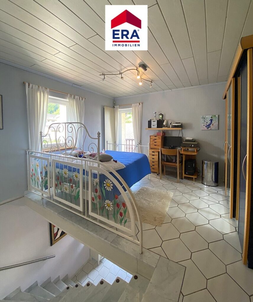 Über die Marmortreppe erreichen Sie das OG mit offenem Büro/Freizeitbereich und Zugang zum Balkon, des Weiteren finden Sie hier das Badezimmer mit Dusche, Wanne und Waschbecken, ein separates WC, ein Abstellraum, sowie 2 weitere Schlafzimmer, eines mit Einbauschrank, eines mit gleichermaßen Zugang zum Balkon.