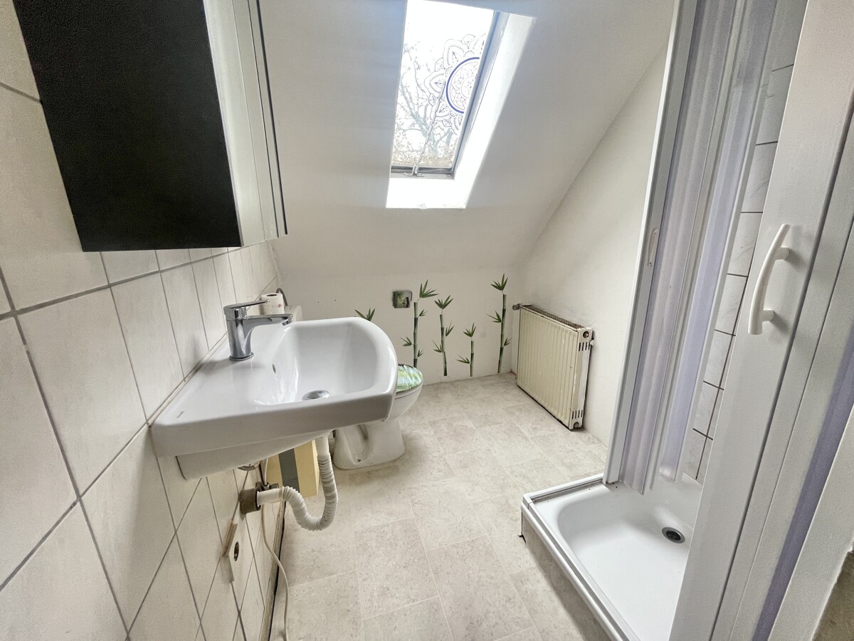 Das Obergeschoss umfasst zwei weitere Zimmer, eine Küche sowie ein Badezimmer mit Dusche , ideal zur Nutzung als separate Wohneinheit oder für eine größere Familie.