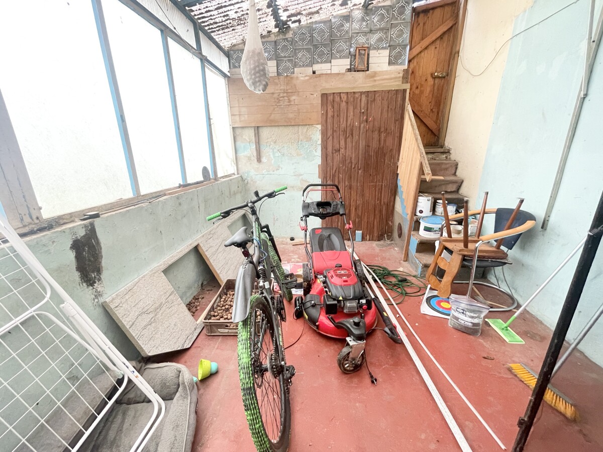 Im Erdgeschoss erwarten Sie vier Zimmer, eine Küche und ein Badezimmer mit Dusche. Wohn- und Schlafbereich sind teilweise offen gestaltet und bieten ein angenehmes Raumgefühl. Ein Wintergarten mit direktem Gartenzugang ist ebenfalls vorhanden.