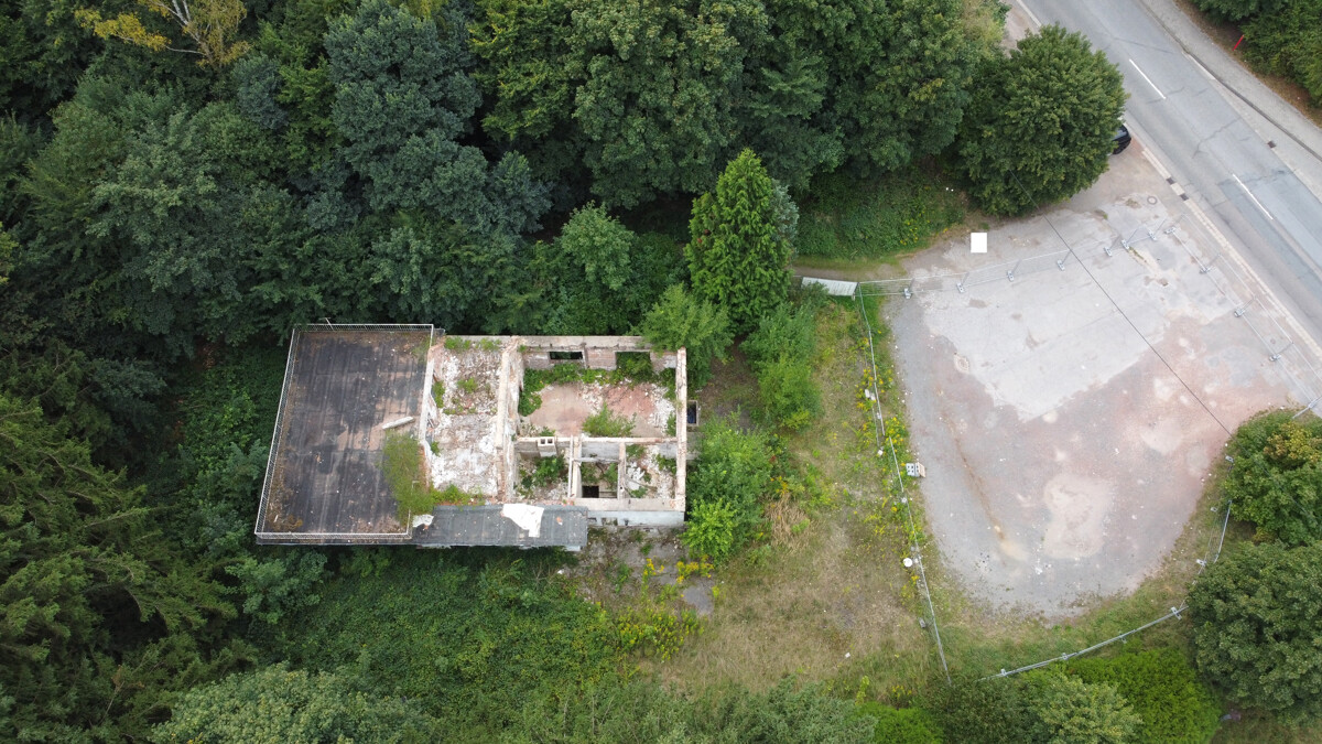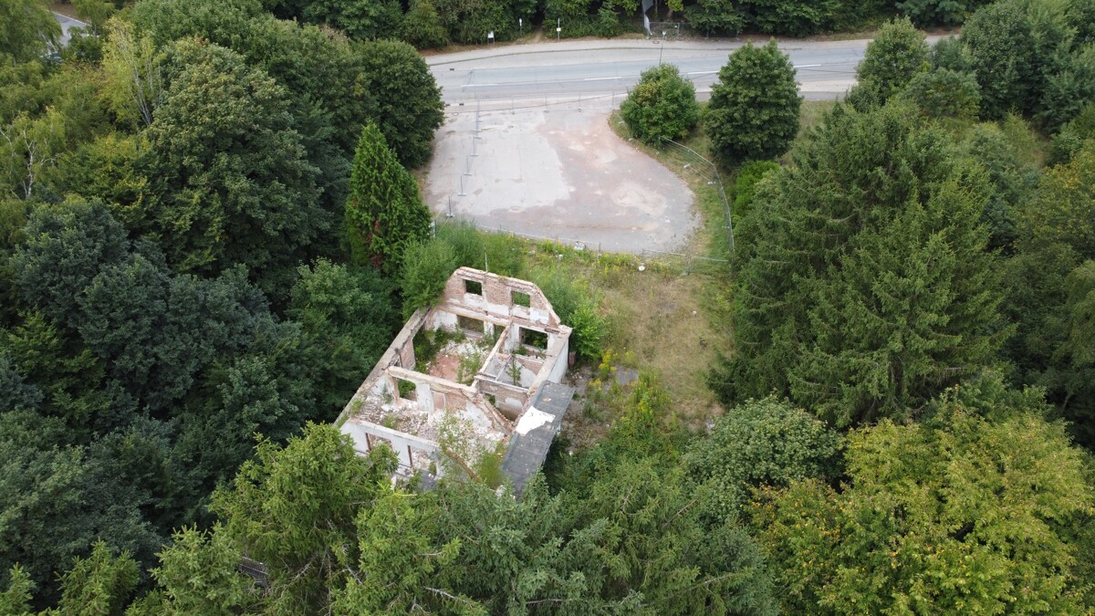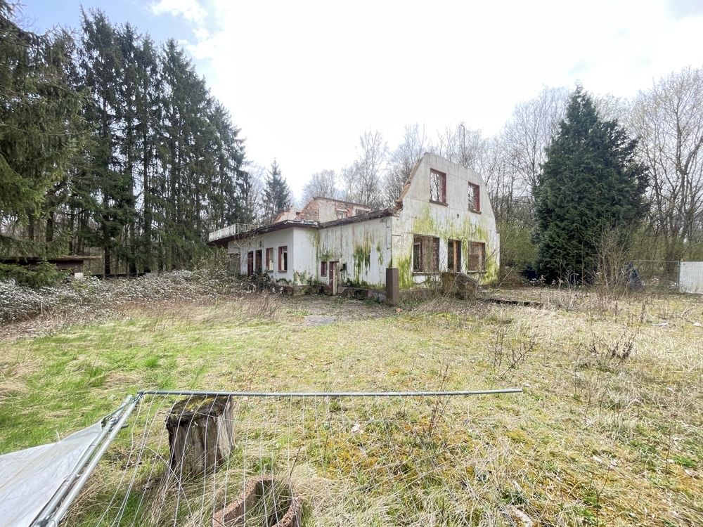 Zum Verkauf steht ein großzügiges Grundstück mit einem Gebäude, das trotz Brandschäden aufgrund des Bestandsschutzes weiterhin bestehen bleibt.
