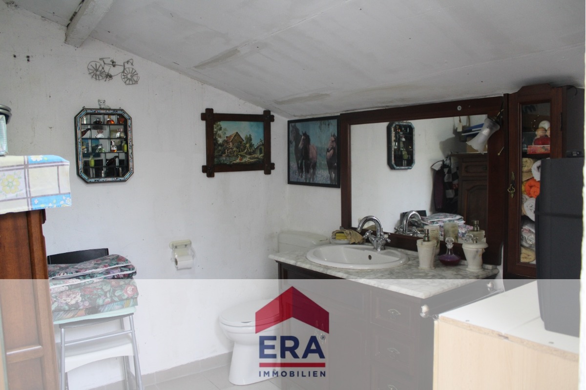 Die großzügige Scheune bietet im Erdgeschoss Platz für bis zu drei Fahrzeuge. Im Obergeschoss befindet sich ein ausgebauter Bereich, der ursprünglich als Spielraum genutzt wurde. Von der Scheune führt eine separate Tür in den hinteren Bereich, der zusätzliche Annehmlichkeiten bereithält: Hier befinden sich ein Badezimmer im Garten, ein Brunnenwasseranschluss sowie eine Küche, die in einem abgeschlossenen Raum untergebracht ist.