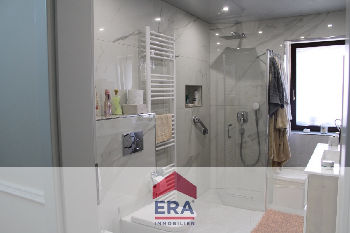 Die zweite Einheit ist eine großzügige Maisonettewohnung mit rund 148 m² Wohnfläche, bestehend aus drei Zimmern, einer Küche, einem Badezimmer mit Einbauschränken sowie einem separaten Gäste-WC.