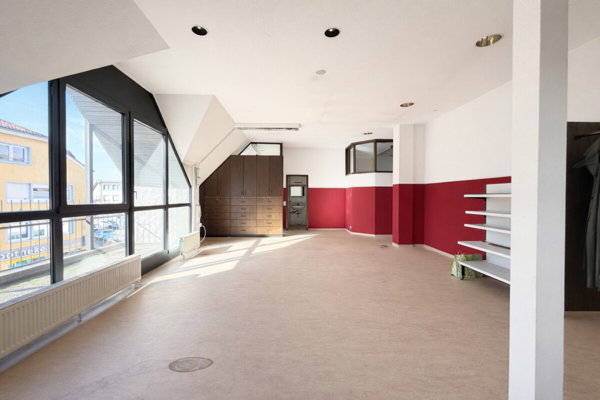 Zur Vermietung steht eine großzügige Gewerbeeinheit im 2. Obergeschoss eines Geschäftshauses mit ca. 130 m² Nutzfläche. Die Fläche überzeugt durch eine praktische Raumaufteilung mit großem Hauptraum, separatem Empfang, drei weiteren Behandlungs- oder Büroräumen sowie Küche und zwei WCs. Ein Balkon ergänzt die Einheit. Die Räumlichkeiten eignen sich ideal für Praxis- oder Dienstleistungsnutzungen wie Physiotherapie, Hausarztpraxis, Kosmetikstudio, Massage oder Büroflächen.