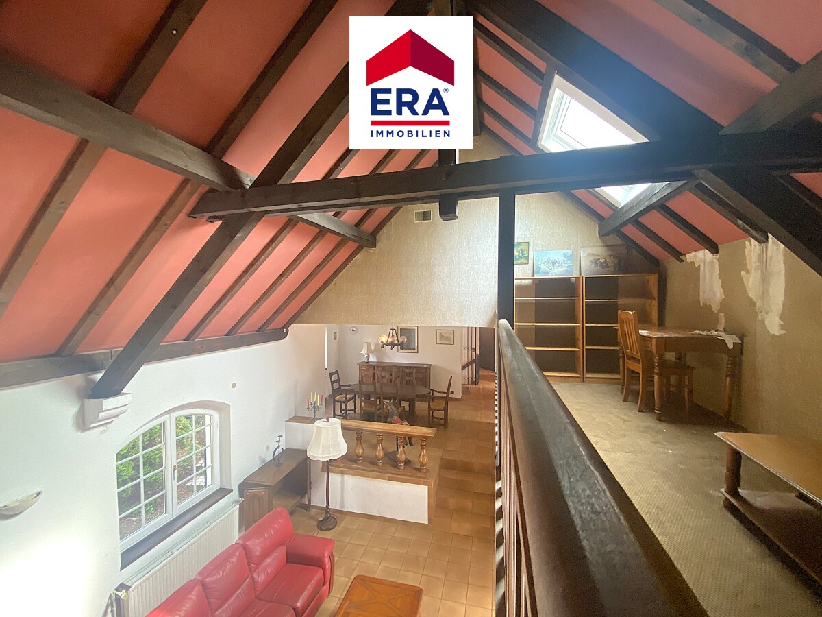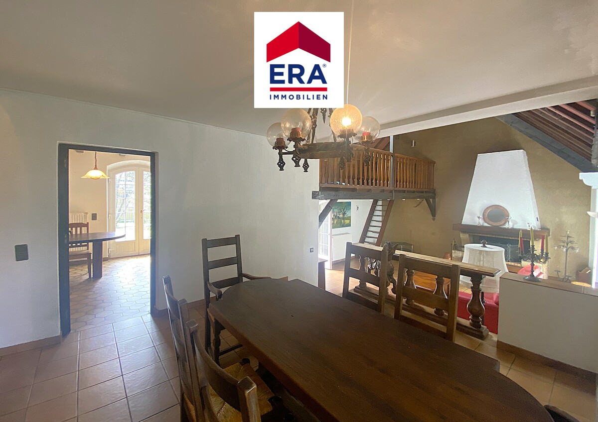 Über den großzügigen, grünen Einfahrtsweg mit Magnolienbaum erreichen Sie den Eingang des Anwesens. Im EG finden Sie den raffiniert geschnittenen Essbereich, über einige Stufen gelangen Sie zum unteren Wohnbereich mit offener Galerie, Holzkamin und direktem Zugang zur Terrasse mit Garten, die Galerie kann als Büro oder Freizeitfläche genutzt werden.