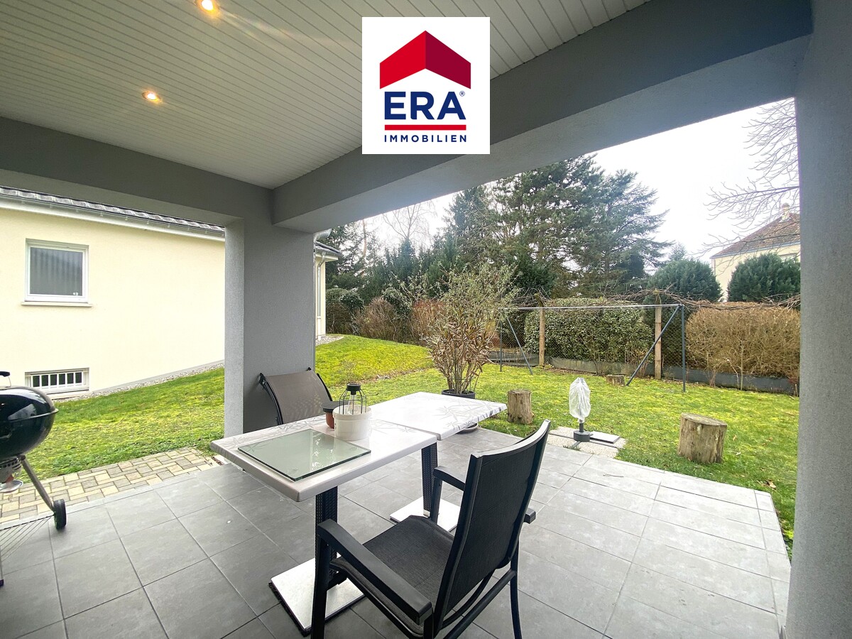 Die überdachte Südterrasse bietet optimalen Schutz auch bei Regenwetter Ihren Kaffee im Freien zu genießen, der Garten rund um das Haus ermöglicht viele Gestaltungsideen.