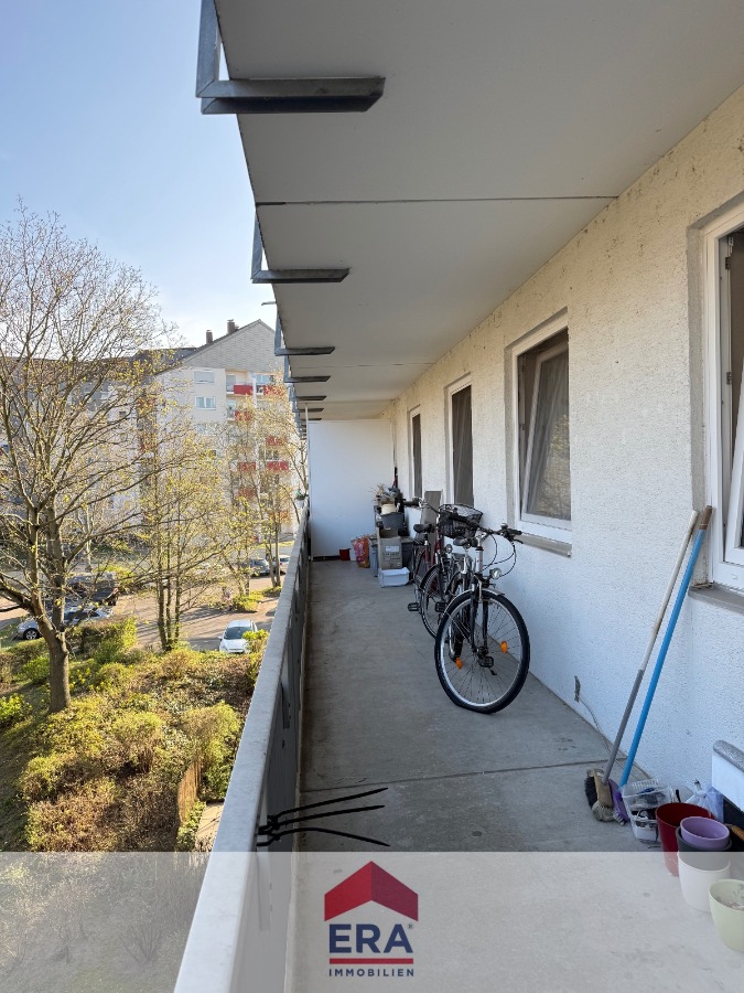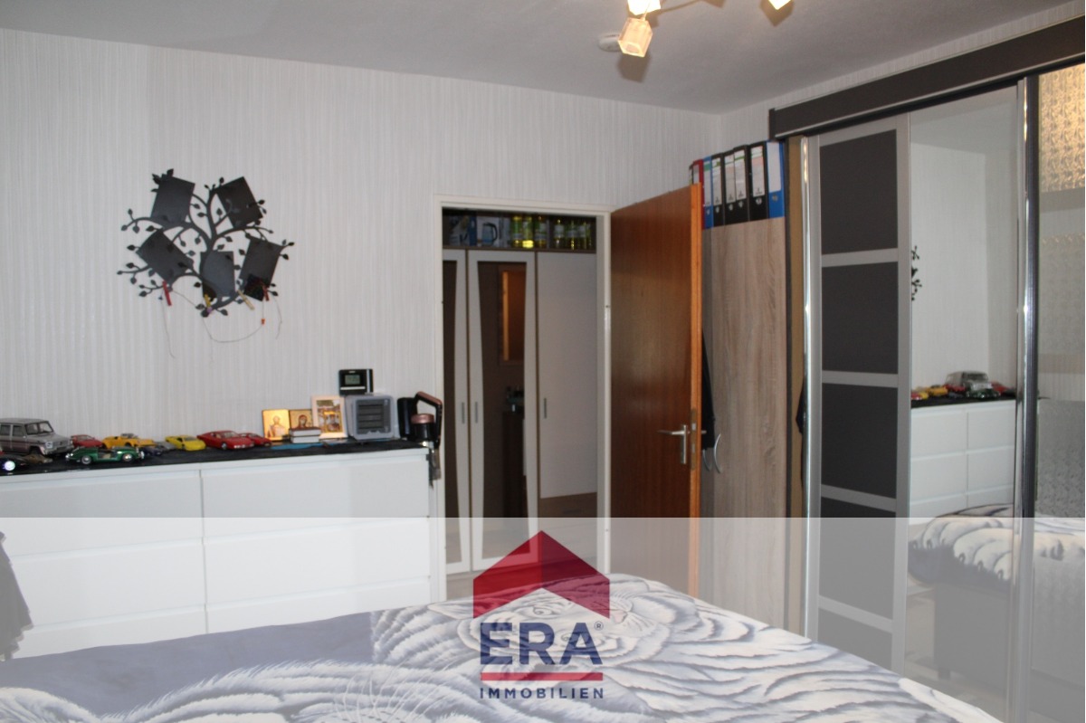 Vom Essbereich aus erreichen Sie bequem alle weiteren Zimmer der Wohnung: Das große Schlafzimmer liegt direkt neben dem Badezimmer, das mit einer Badewanne ausgestattet ist. Ein helles, freundliches Wohnzimmer bietet Zugang zum großzügigen Balkon, der viel Platz für Sitzgelegenheiten und zusätzlichen Stauraum bietet.