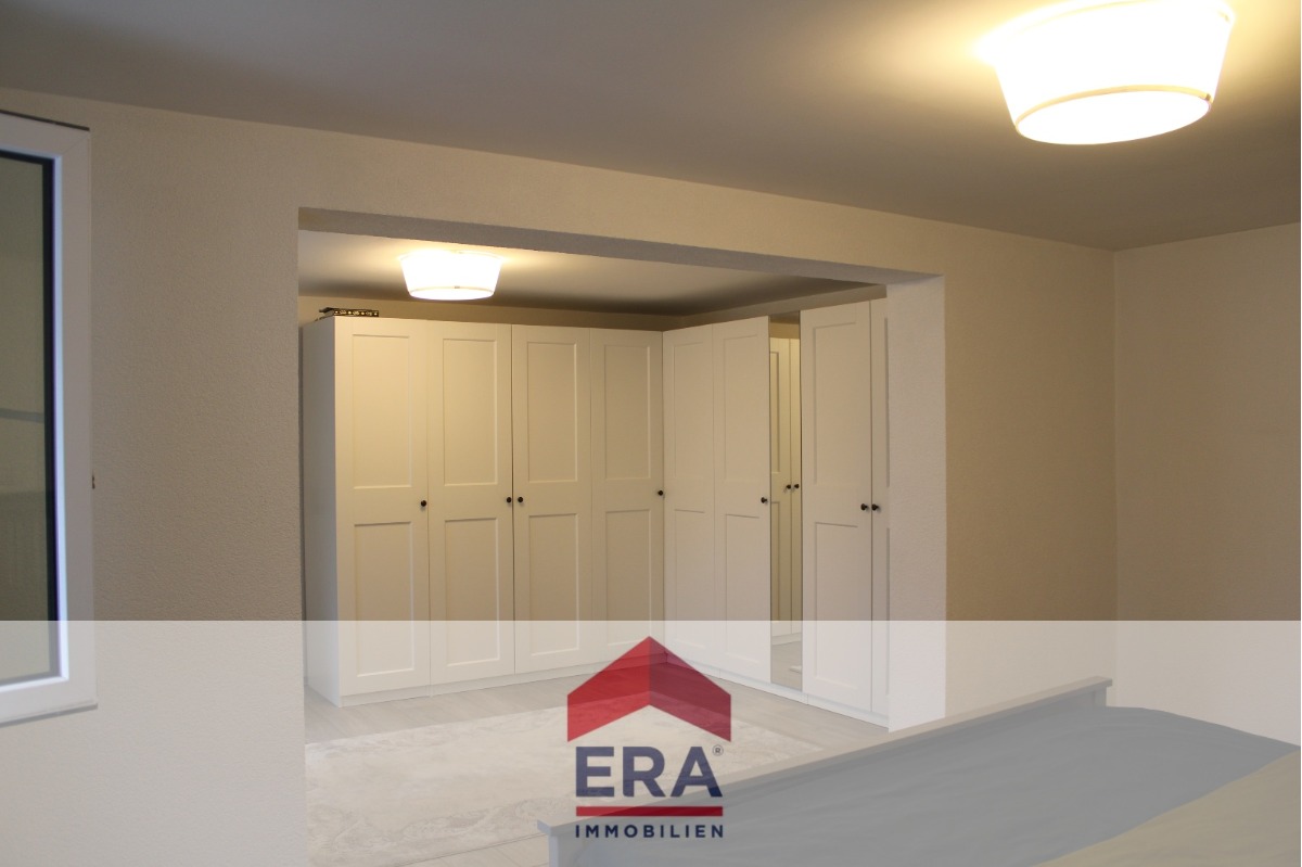 Im 1. Obergeschoss befindet sich das großzügige Schlafzimmer mit einem offenen Ankleidebereich, der durch seine Größe und Helligkeit besticht. Auf derselben Etage liegen zudem das moderne Tageslichtbad mit Dusche sowie ein separates Gäste-WC.